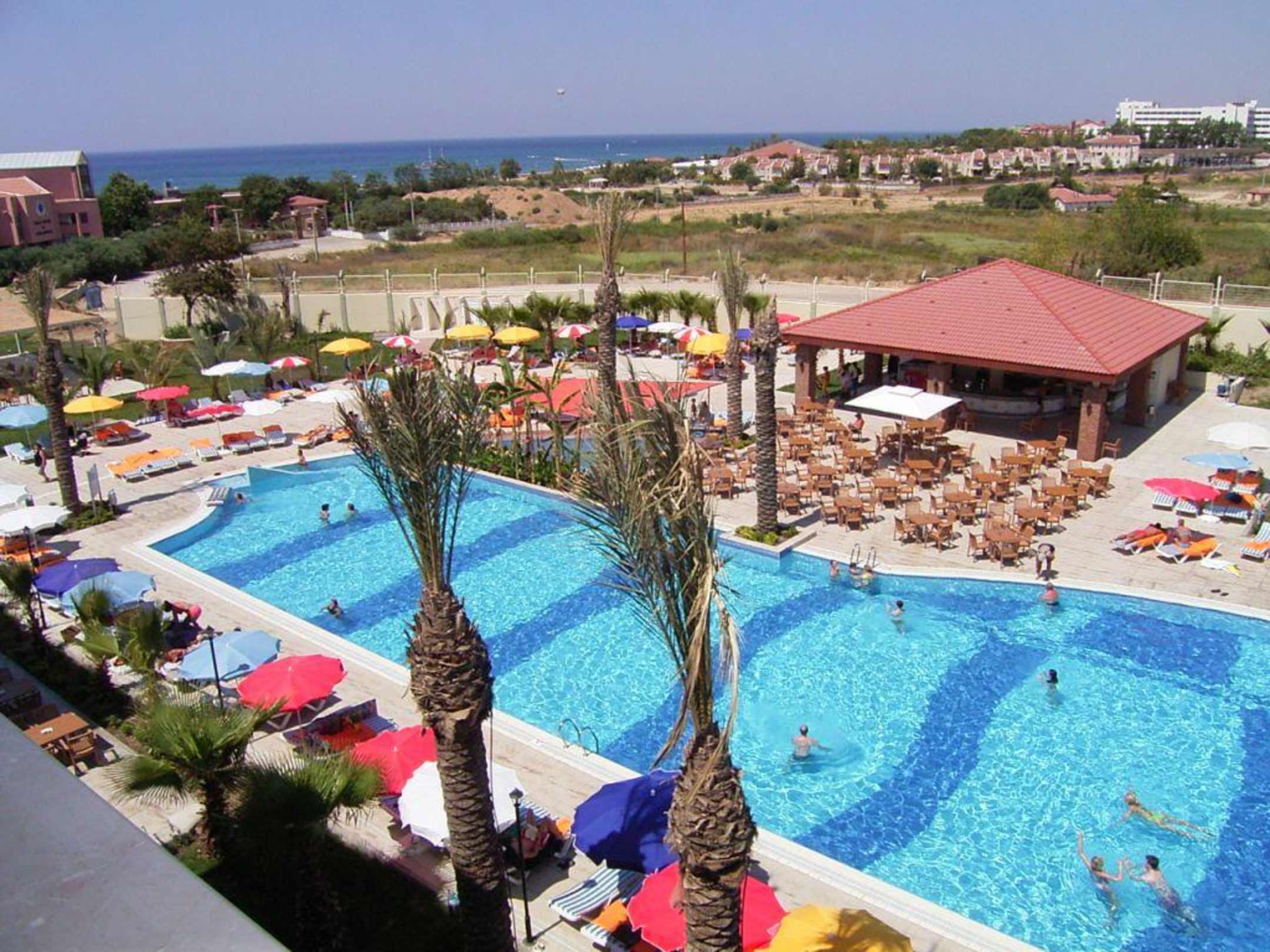 Der andere Teil vom Relax-Pool mit der dazugehörigen Poolbar, unten Links sieht man schon ein kleines Stück von der Restaurant-Terrasse (die zwei braunen Tische)