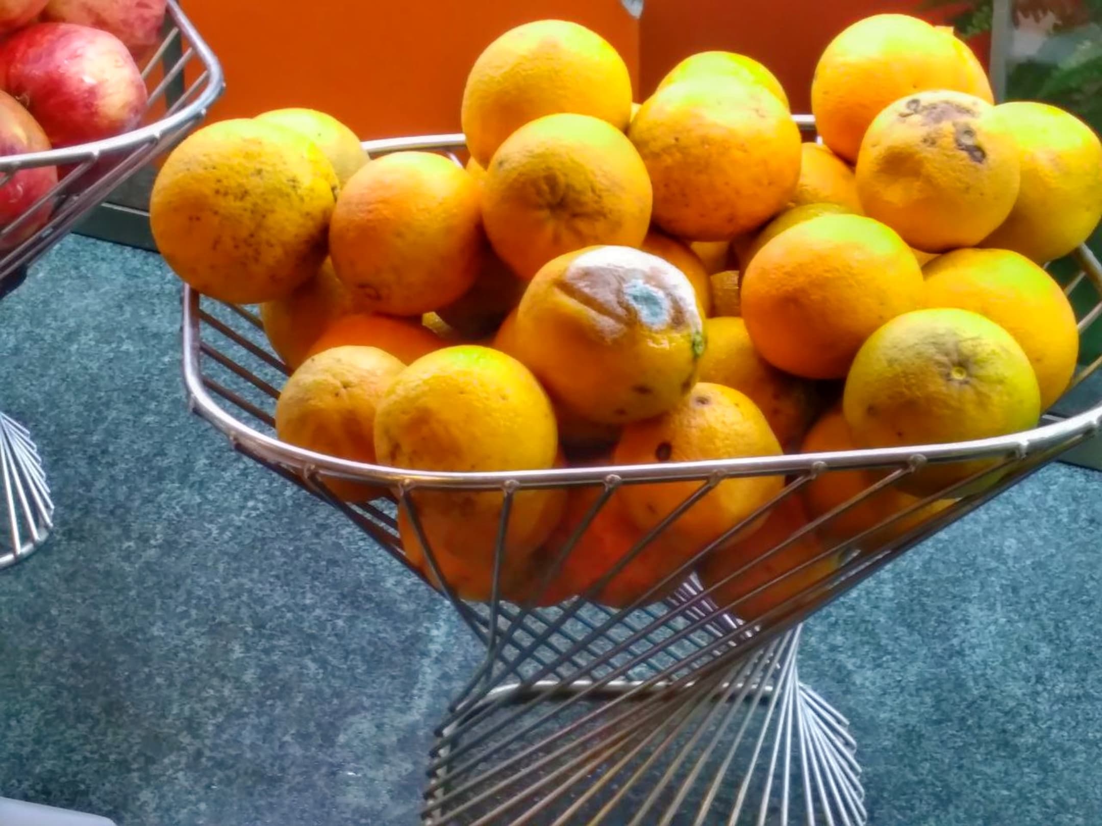 Es interessiert keinen ,dutzende Mitarbeiter belegen weiter diese Auslagen mit neuen Speisen und stören sich nicht an den veschimmelten Früchten , bis sich mehrere über diesen Zustand beklagt haben .