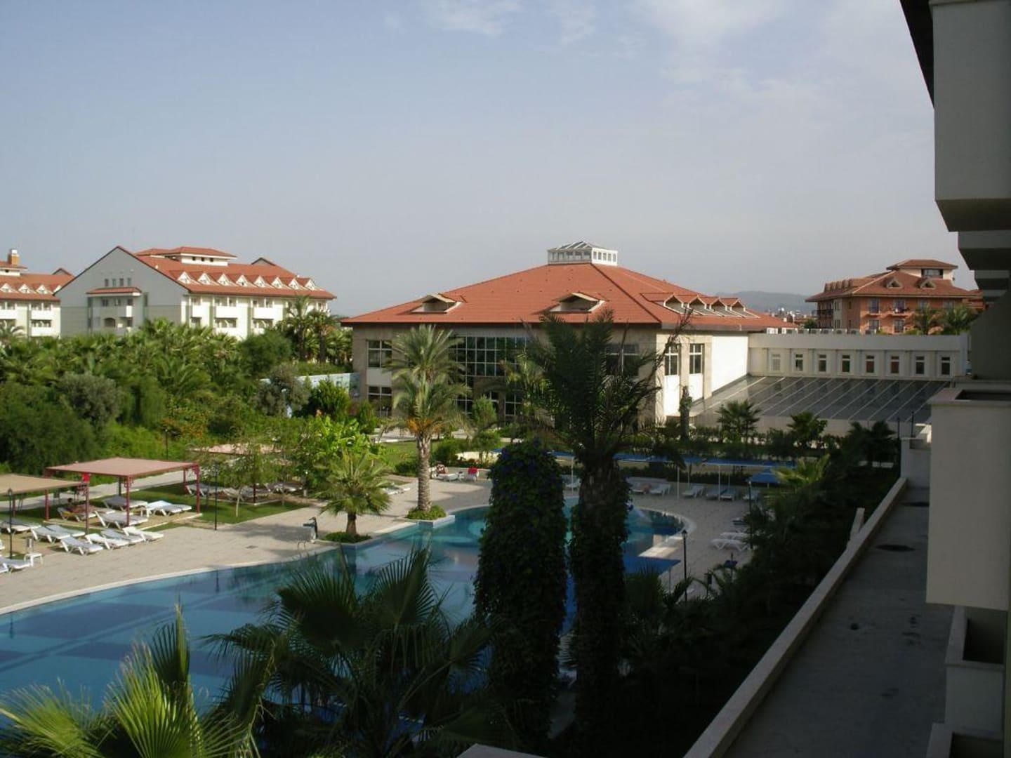 Blick vom Balkon auf den ruhe Pool