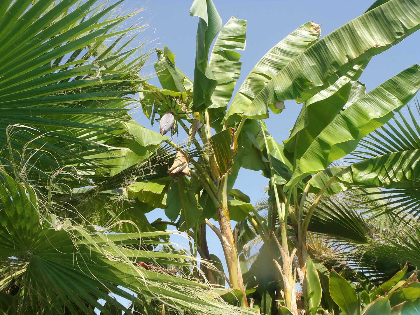 Bananenbaum mit Blüte und Banane