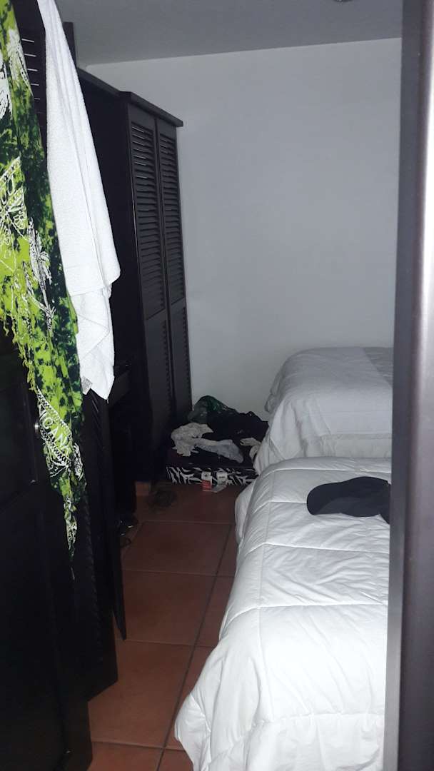 Schlafzimmer mit Kleiderschrank und TV
