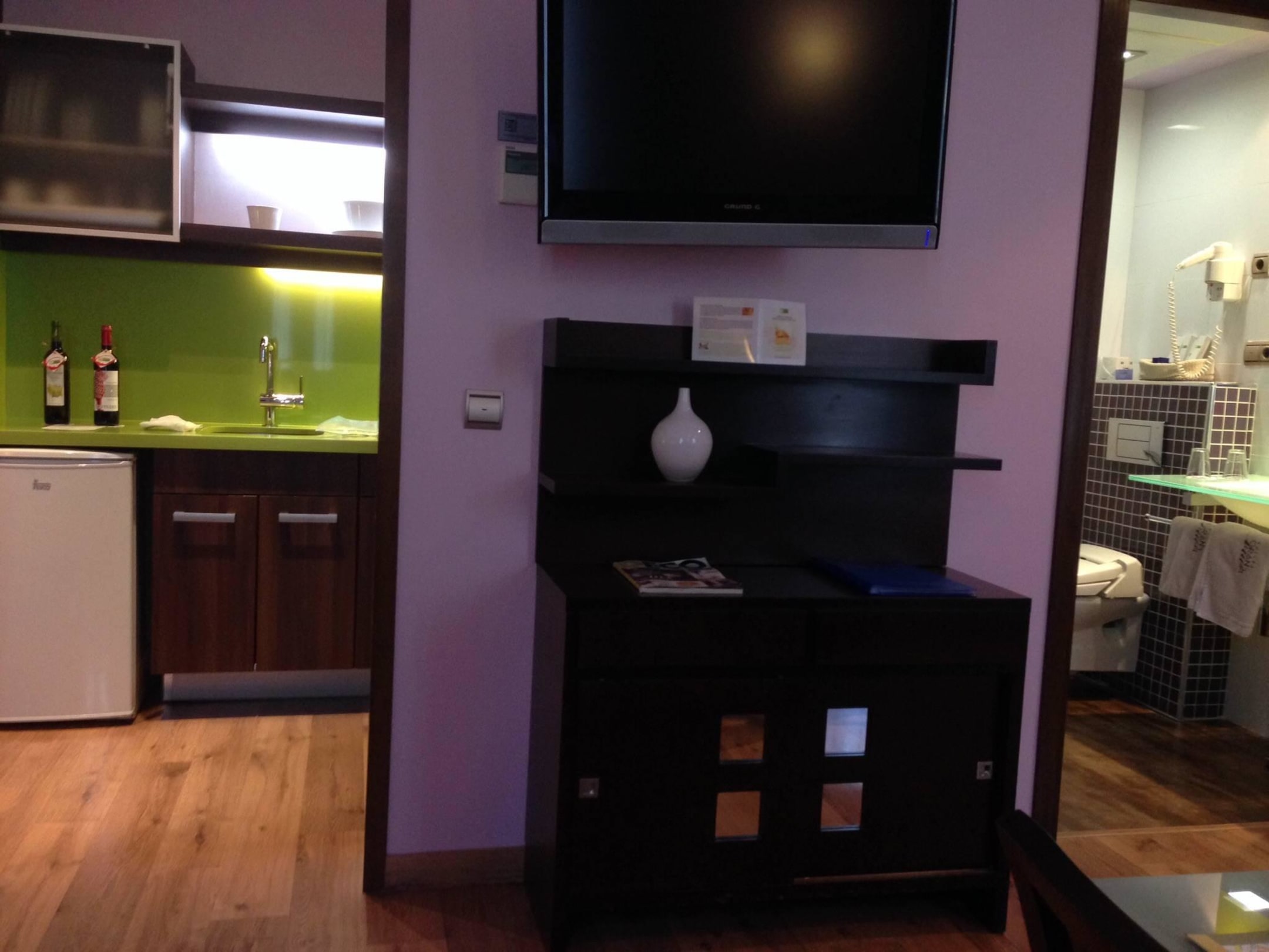 Küche, Bad, aus dem Wohnzimmer heraus