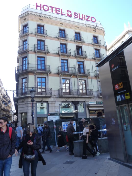 Außenansicht Hotel Suizo, davor Baustelle der Metro-Station Jaume