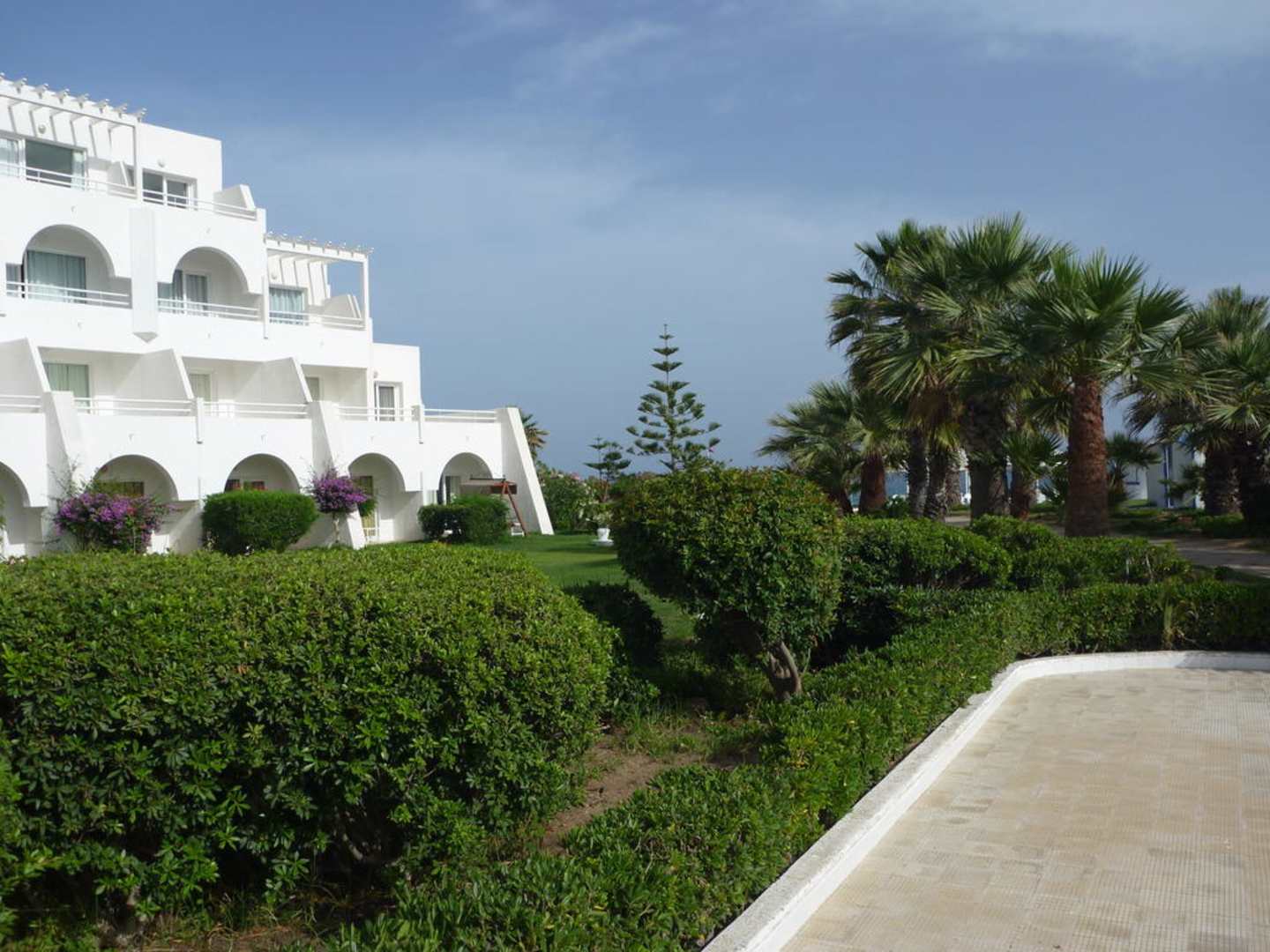 Hotelowy ogród oraz droga wśród zieleni prowadząca na plaże