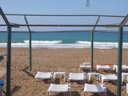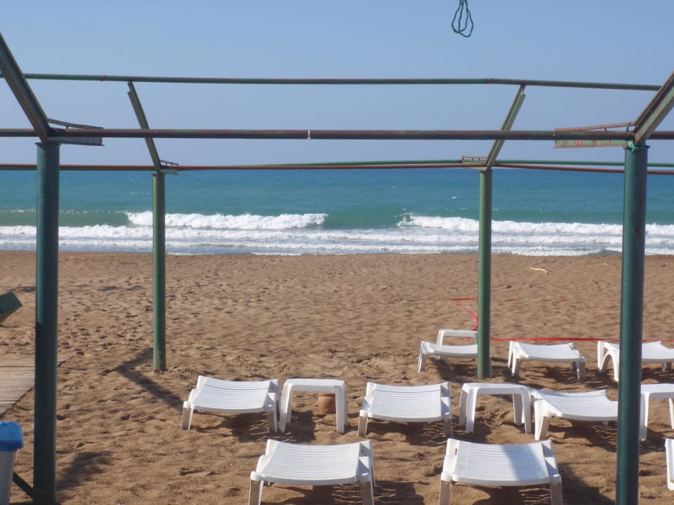 Hoteleigener Stand mit Liegen. Auflagen gibts auch
