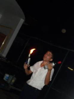 mit seiner Feuershow
