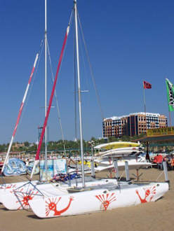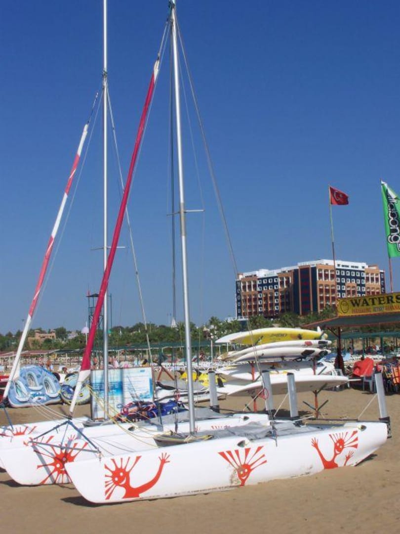 Katamaran am Hotelstrand