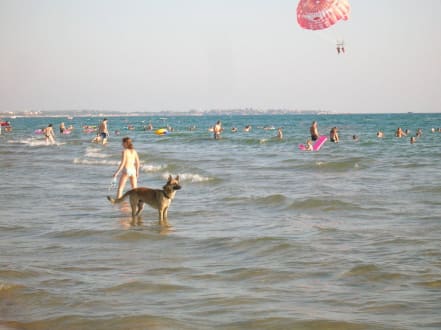 Strand mit Hund und Parasailing