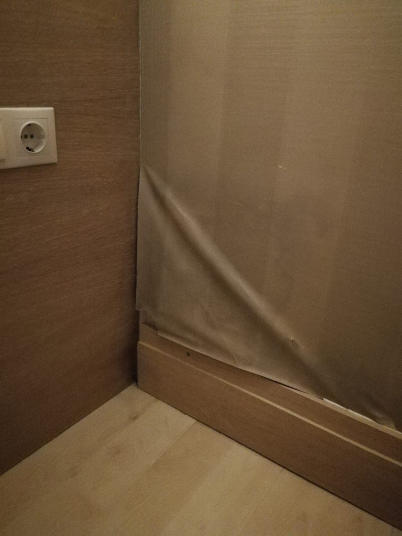 Tapete löst sich, neben dem Bett, Höhe Kopfteil.