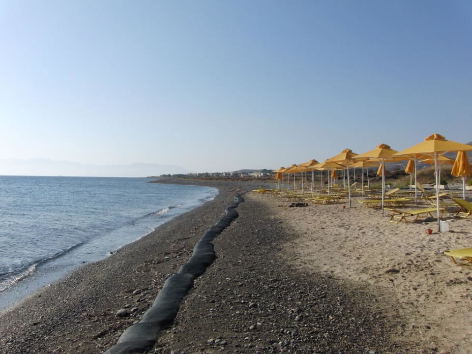 StrandEtwas aufgeschütteter Sand. Große Kieselsteine. Sandsäcke um einigermaßen normal ins Meer zu gehen.