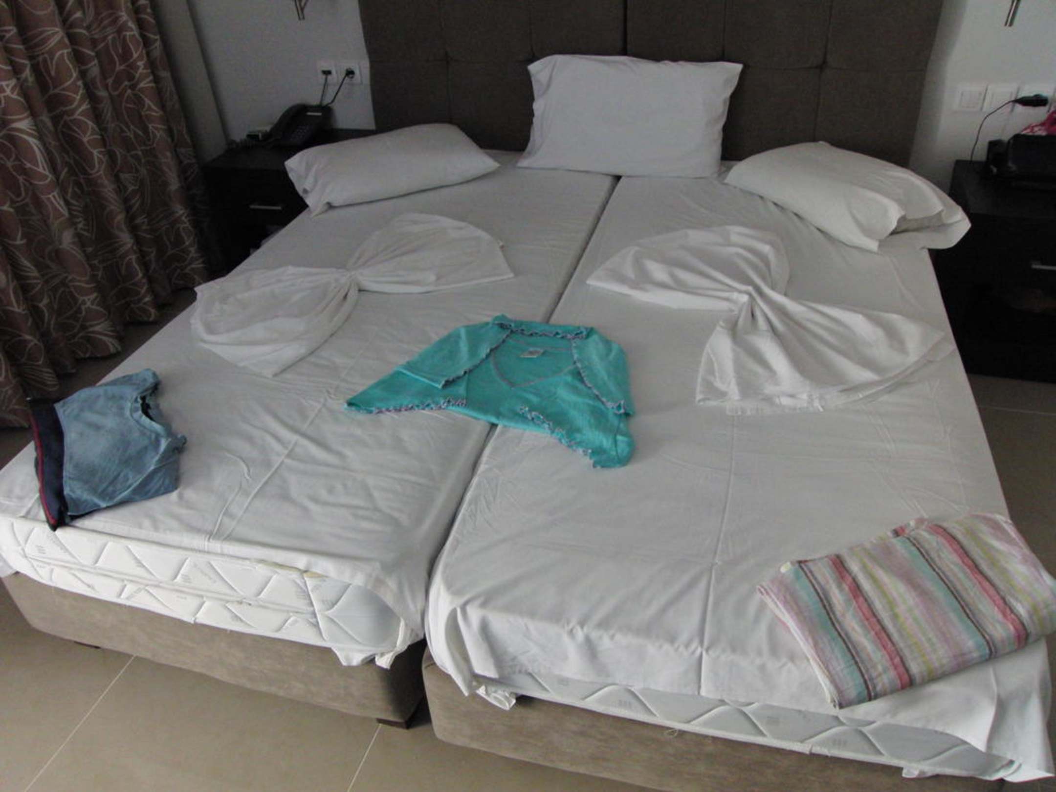 Hotelmädchen haben sich viel Mühe gegeben. Bett hat jeden Tag anders ausgesehen.