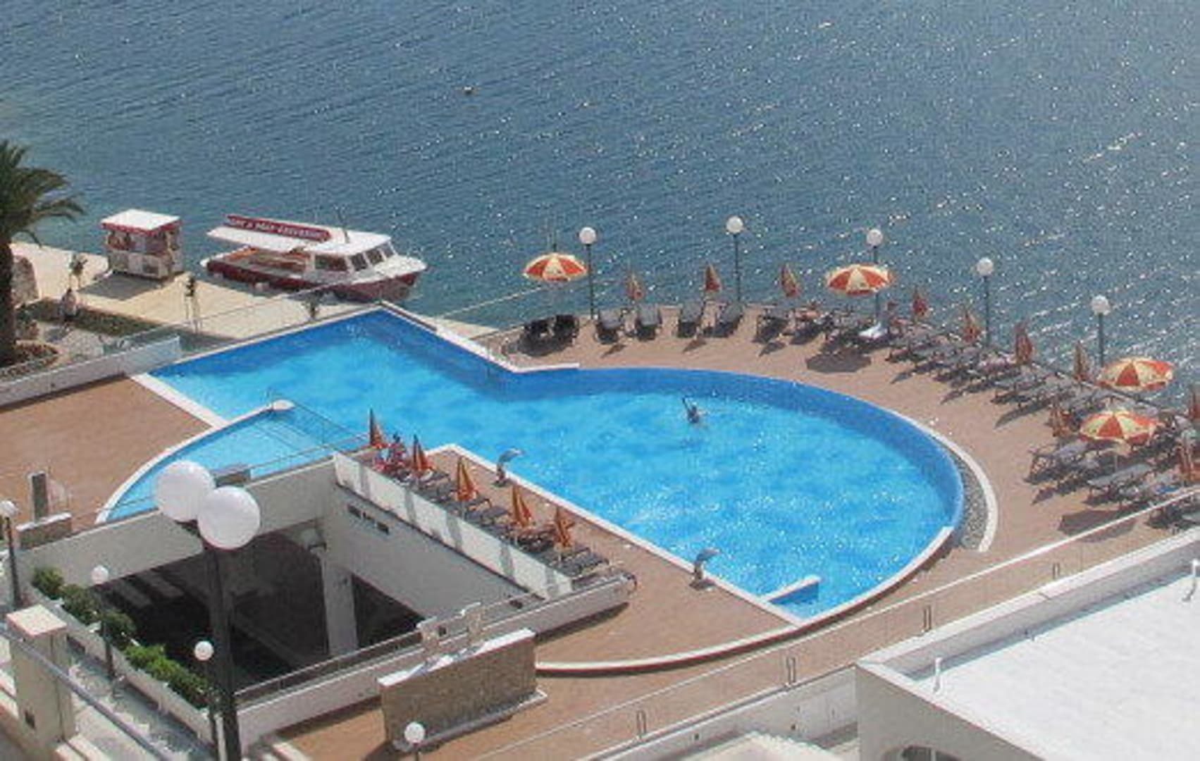 Blick vom Balkon auf Poolanlage