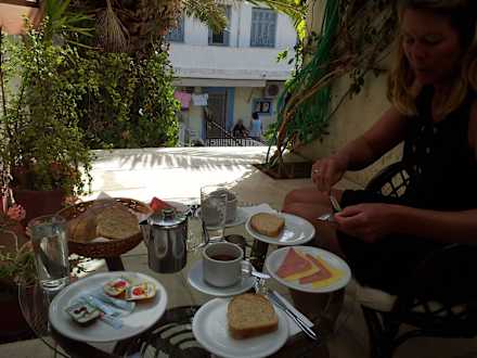 Bescheidenes Frühstück an einzigem Aussentisch