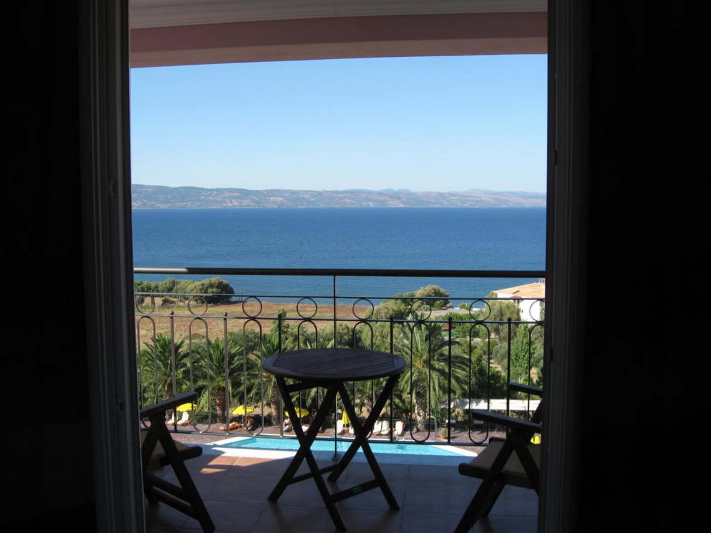 Ausblick vom Zimmer über die Anlage, das Meer bis