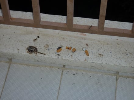 Da es auf unserem Zimmer keine Aschenbecher gab musste ich die Zigaretten auf dem Balkon aus machen. Nach 5 tagen hat es die Putzfrau entdeckt und entfernt.