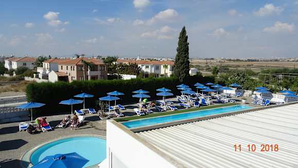 Blick aus unserem Zimmer auf den Pool und den Kinderpool.
