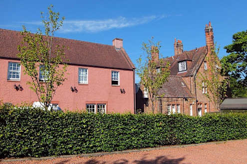 Außenansicht, links Neubau,rechts das alte Gebäudebeide Gebäude sind durch einen Gang verbunden. Das foto ist vom Parkplatz aus entstanden.