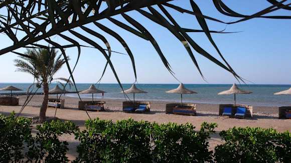 Blick vom Pool zum Strand