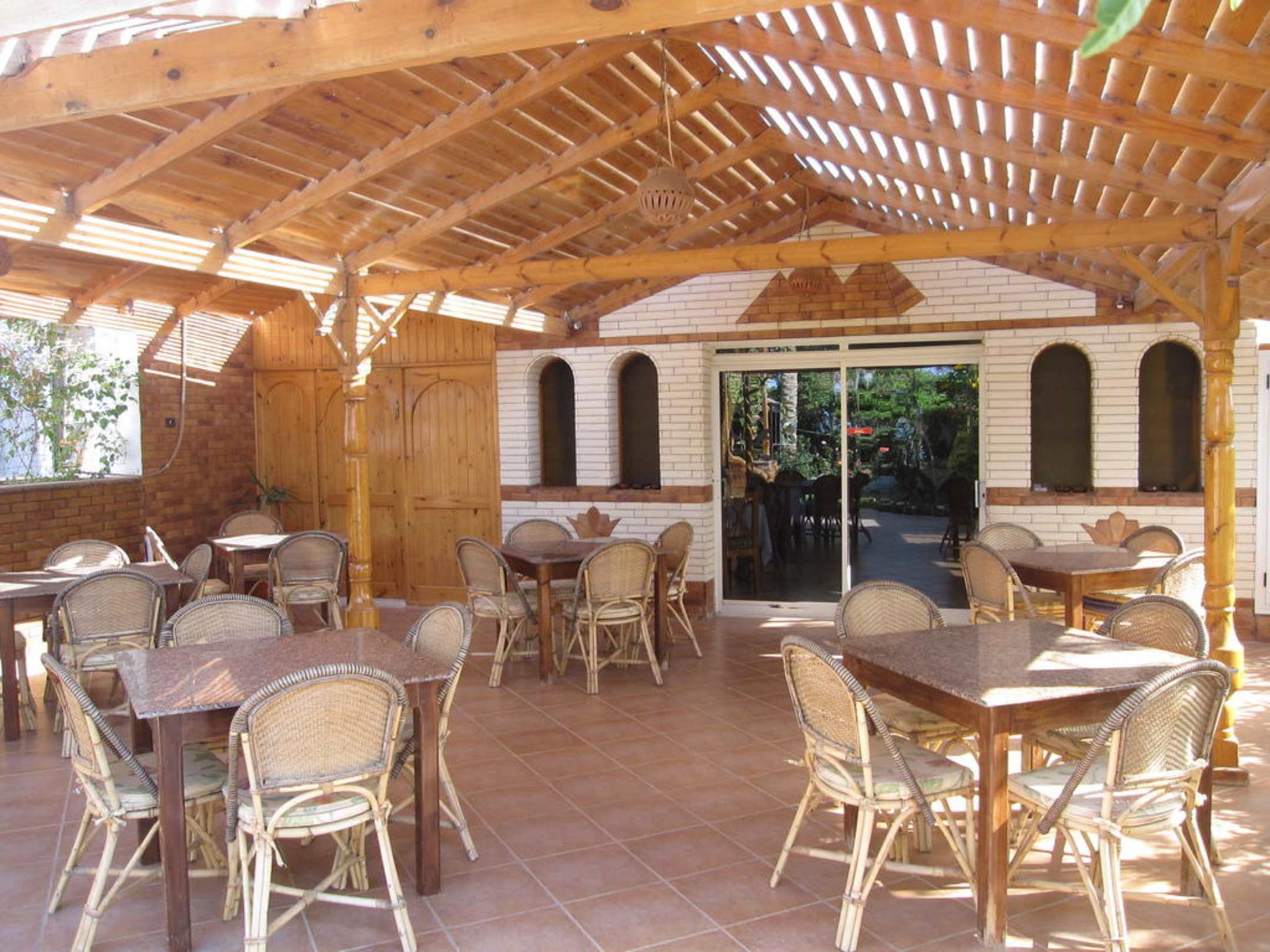 Überdachter Bereich für die Mahlzeiten