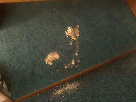 Zerkrümmelter Keks hinter einer Komode.