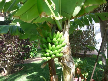 Um den Pool und im restlichen Garten wachsen sogar Bananen. Sieht super aus.