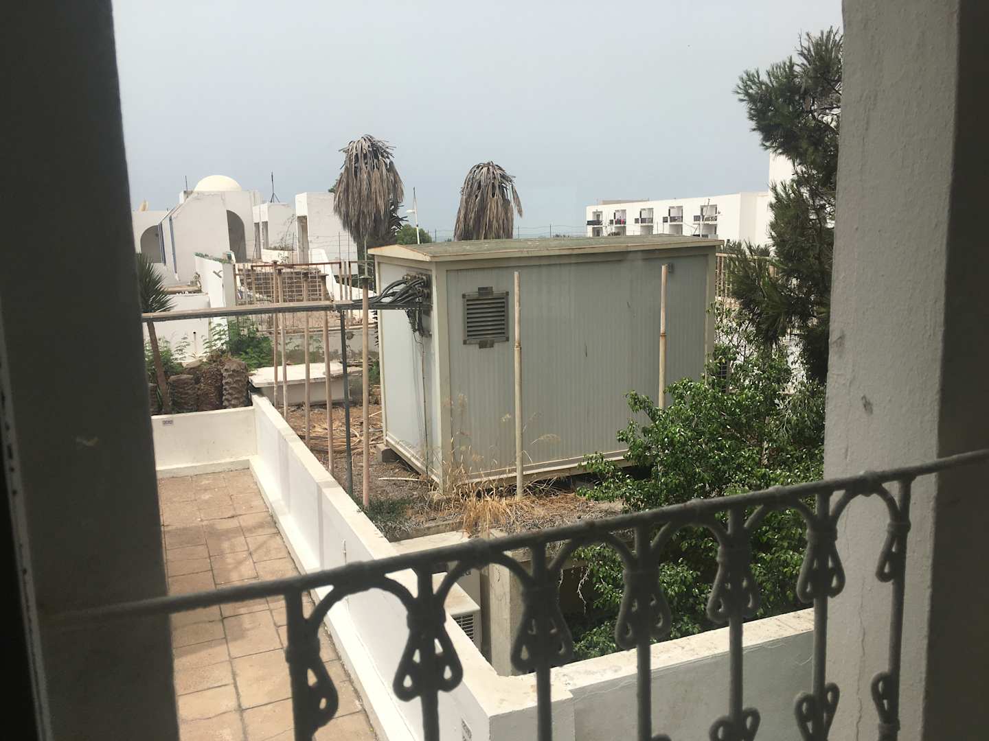 Blich in den Garten war Blick auf eine Elektoanlage