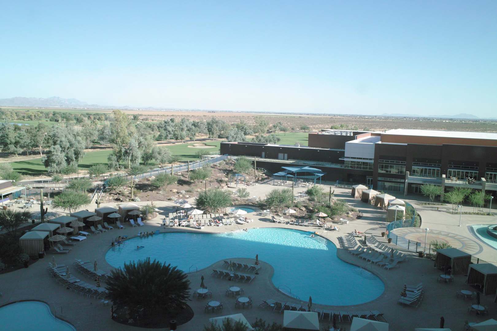 Blick aus dem Zimmer zum Pool
