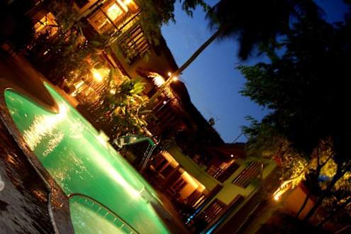 Poolanlage am Abend