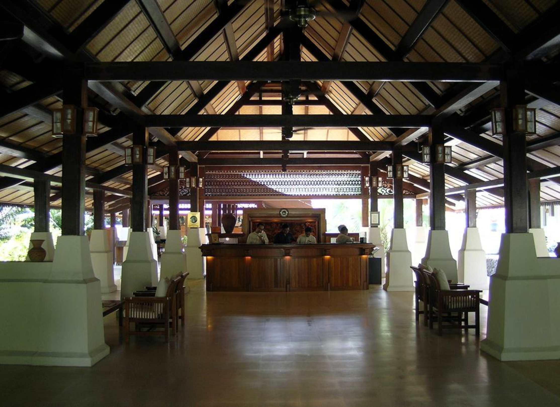 Die Empfangshalle und der gesamte dazugehörende Bereich wurde einem malayischen Sultanspalast aus dem 18ten Jahrhundert nachempfunden. Resort wurde schon mit höchsten Architektur-Preisen ausgezeichnet.