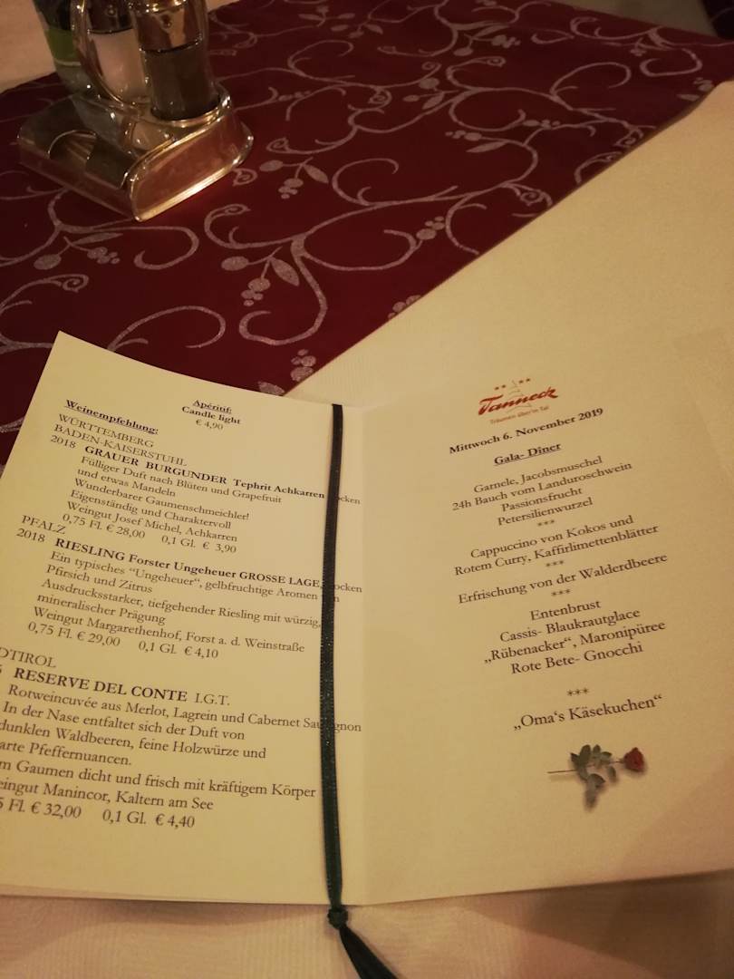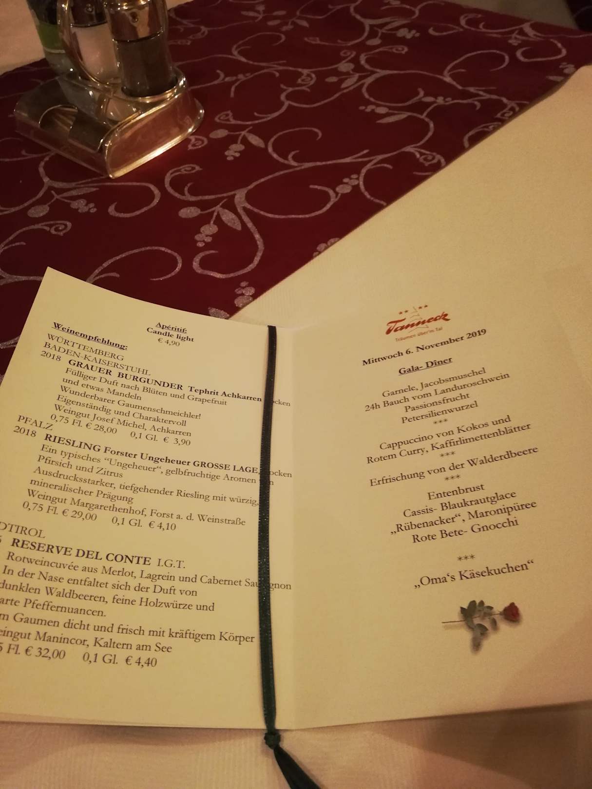 Gala Dinner Menü Karte