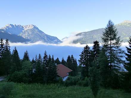 Früh. Erst total nebelig. Dann lässt die Sonne den Nebel nach und nach verschwinden.