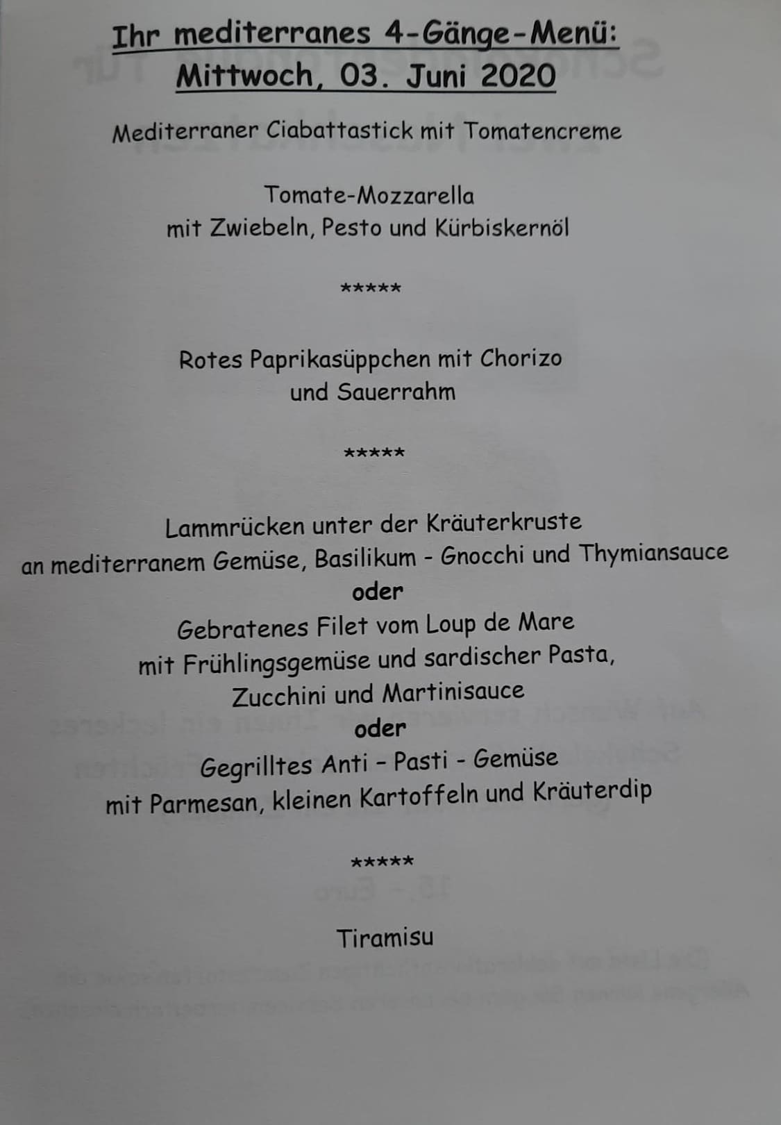 Mediterranes 4-Gänge-Menü - wenn einem da das Wasser nicht im Mund zerläuft... ;-)
