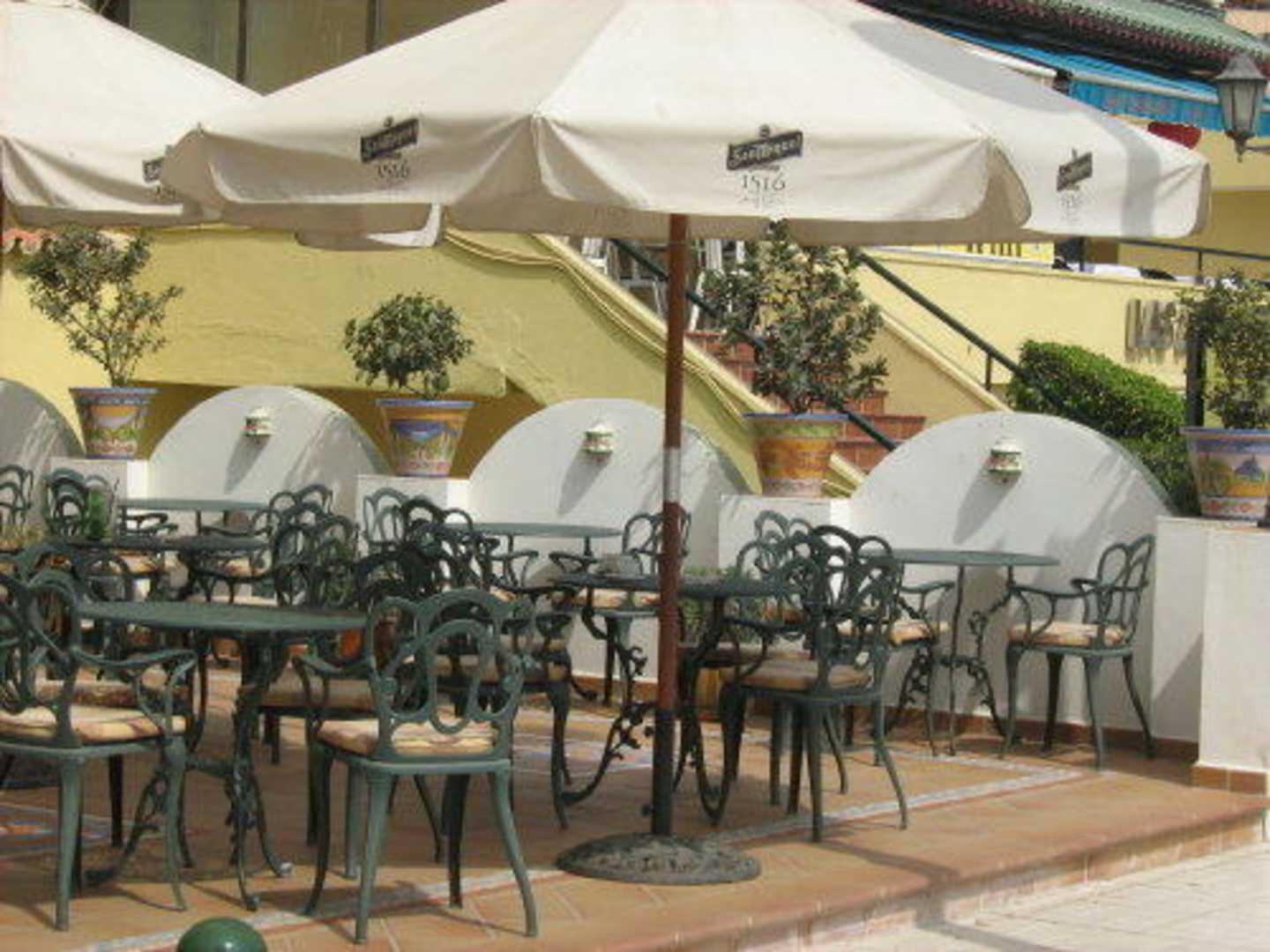 Sitzecke vor dem Eingang des Hotels