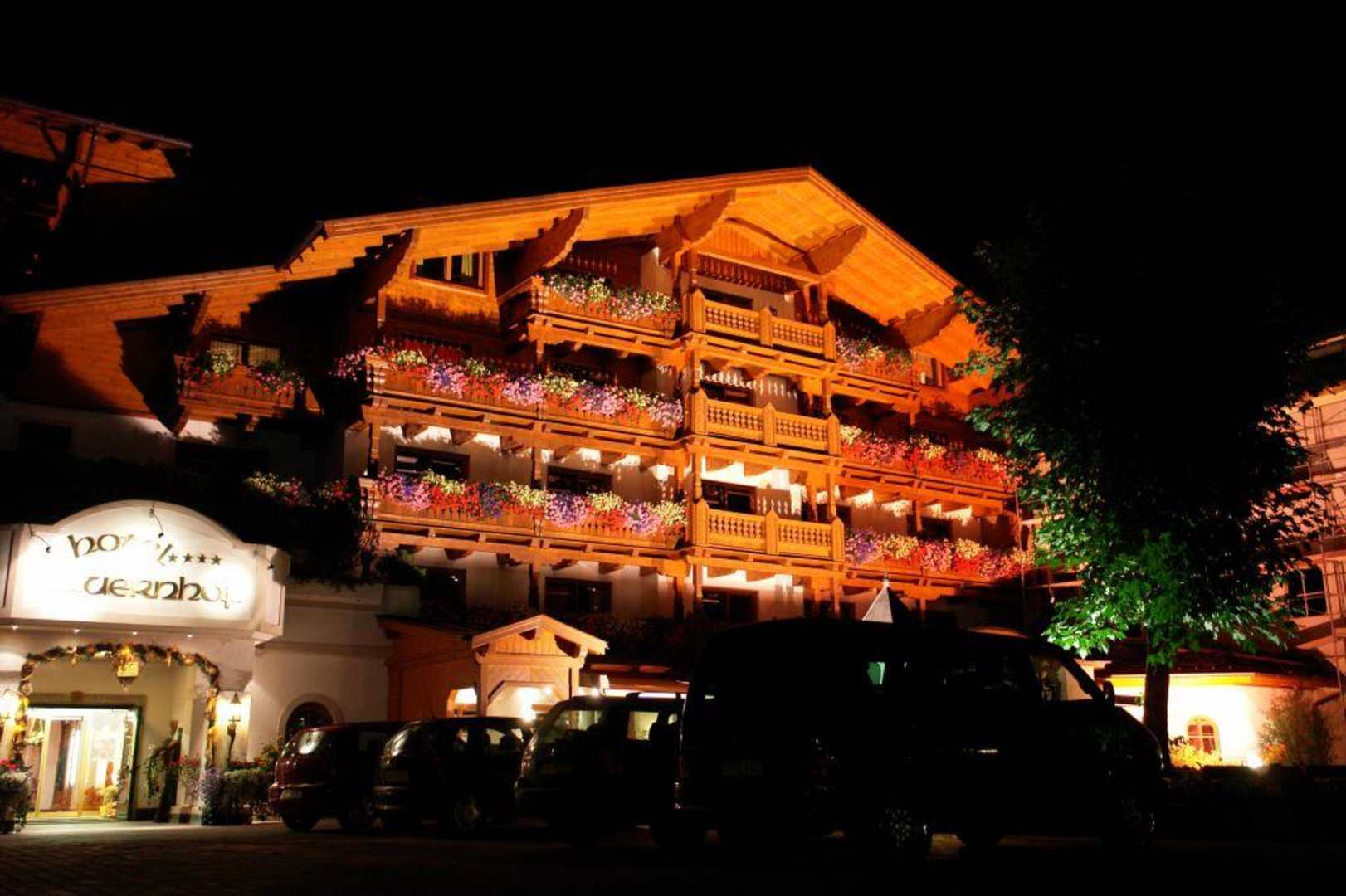 Das Hotel "Tauernhof" bei Nacht