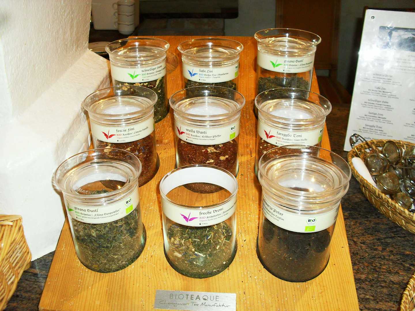 Teesorten beim Frühstücksbüffet