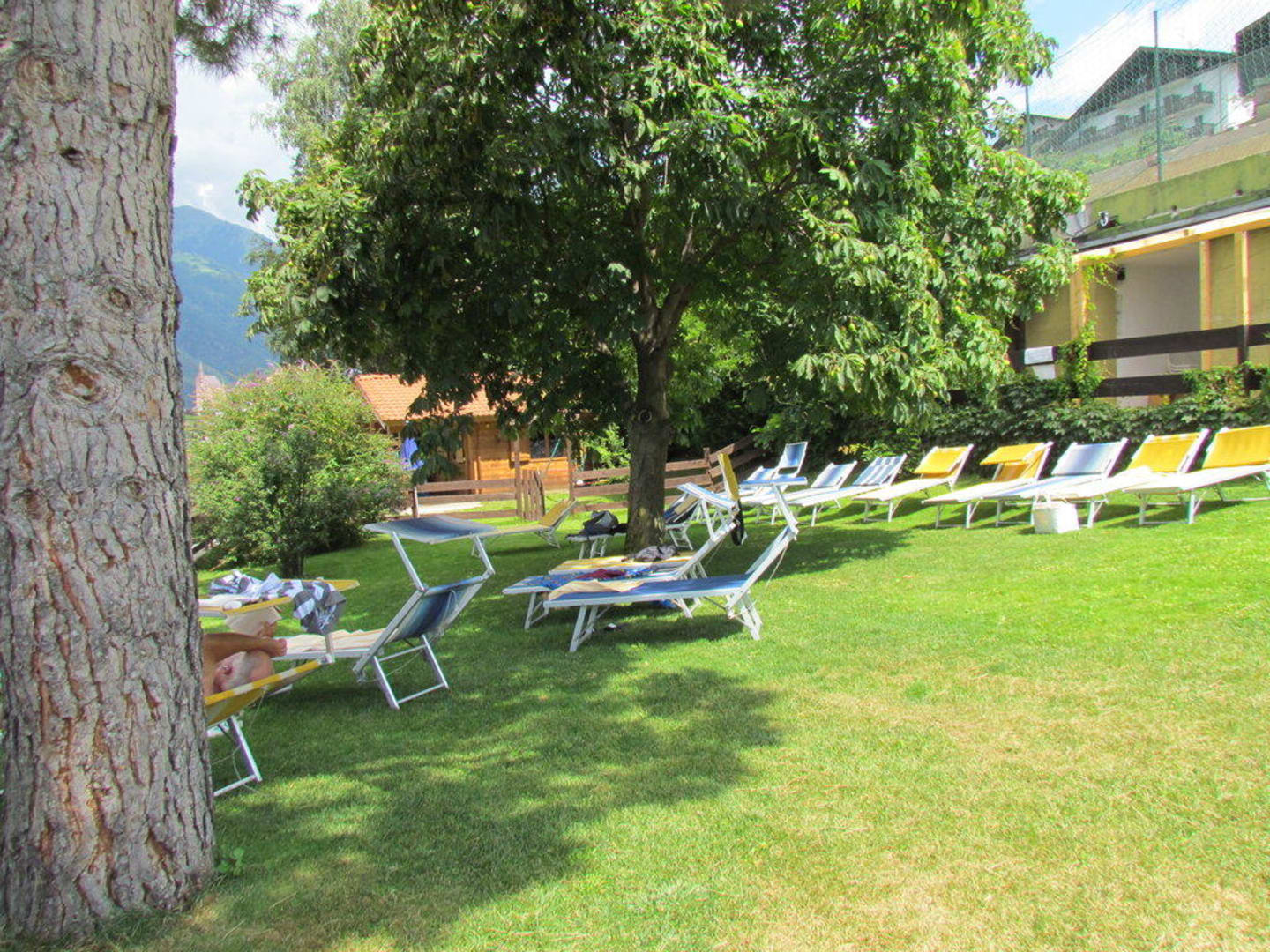 RuhezoneGroßzügige Liegewiese am Pool mit Blick auf Dorf Tirol und Meran