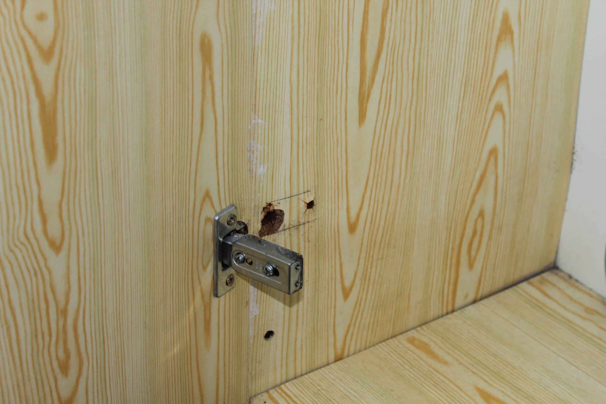 Kleiderschrank, ausgebrochenes Türscharnier