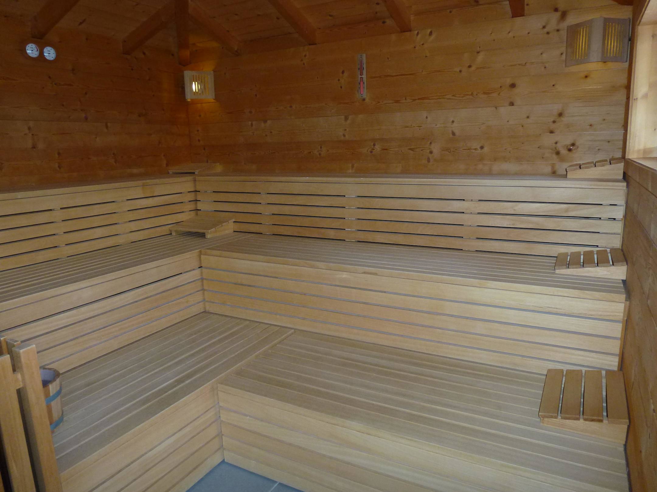 Außensauna mit Fenster/Bergblick