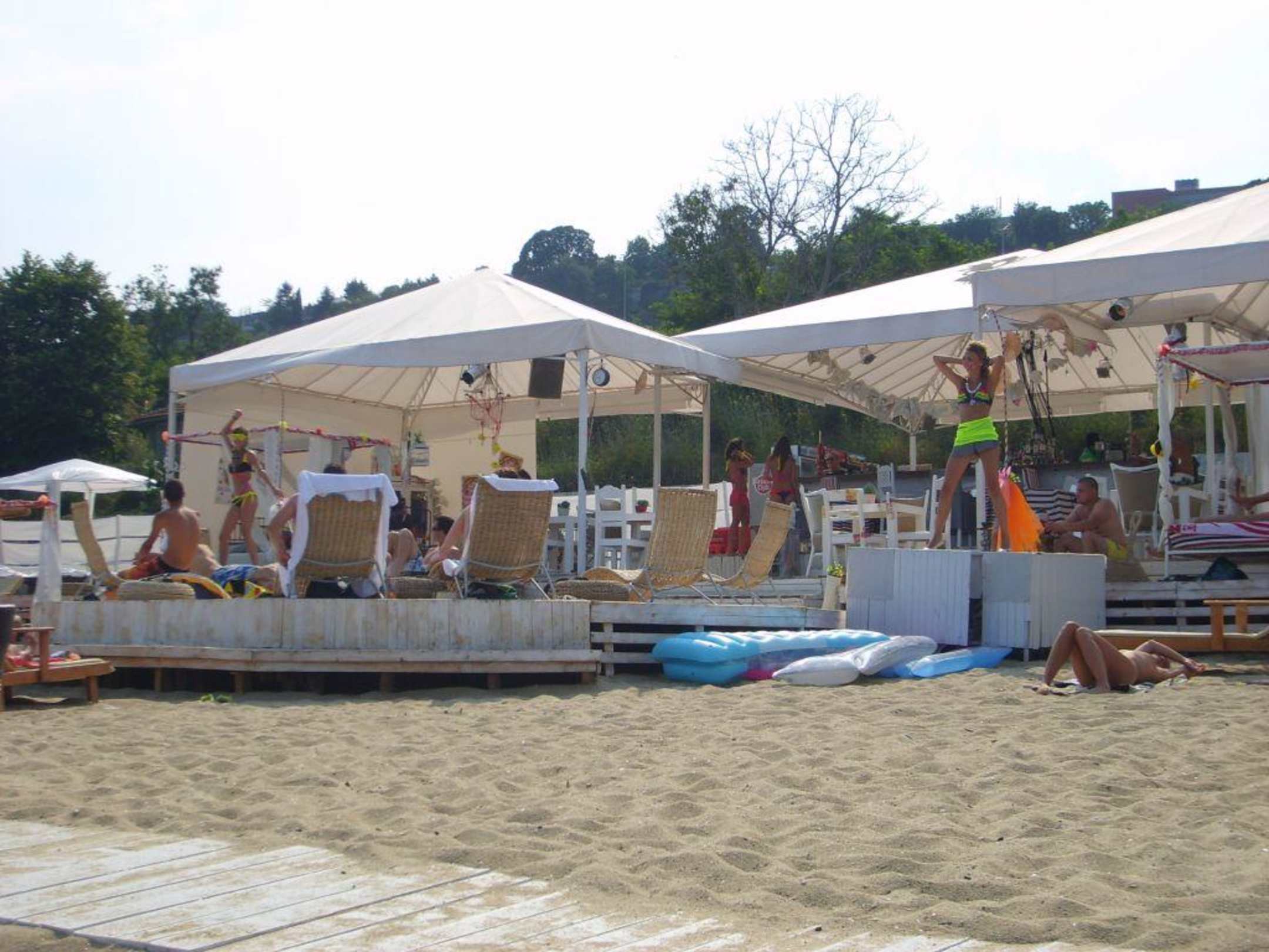 sobota południe, temp. 35C, tancerki ruszające się w rytm granego na żywo house'u