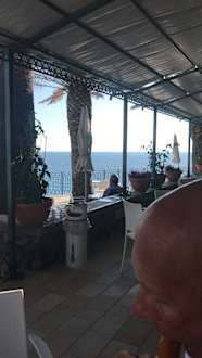 Blick aus der Bar in Richtung Strand , Bucht Citara