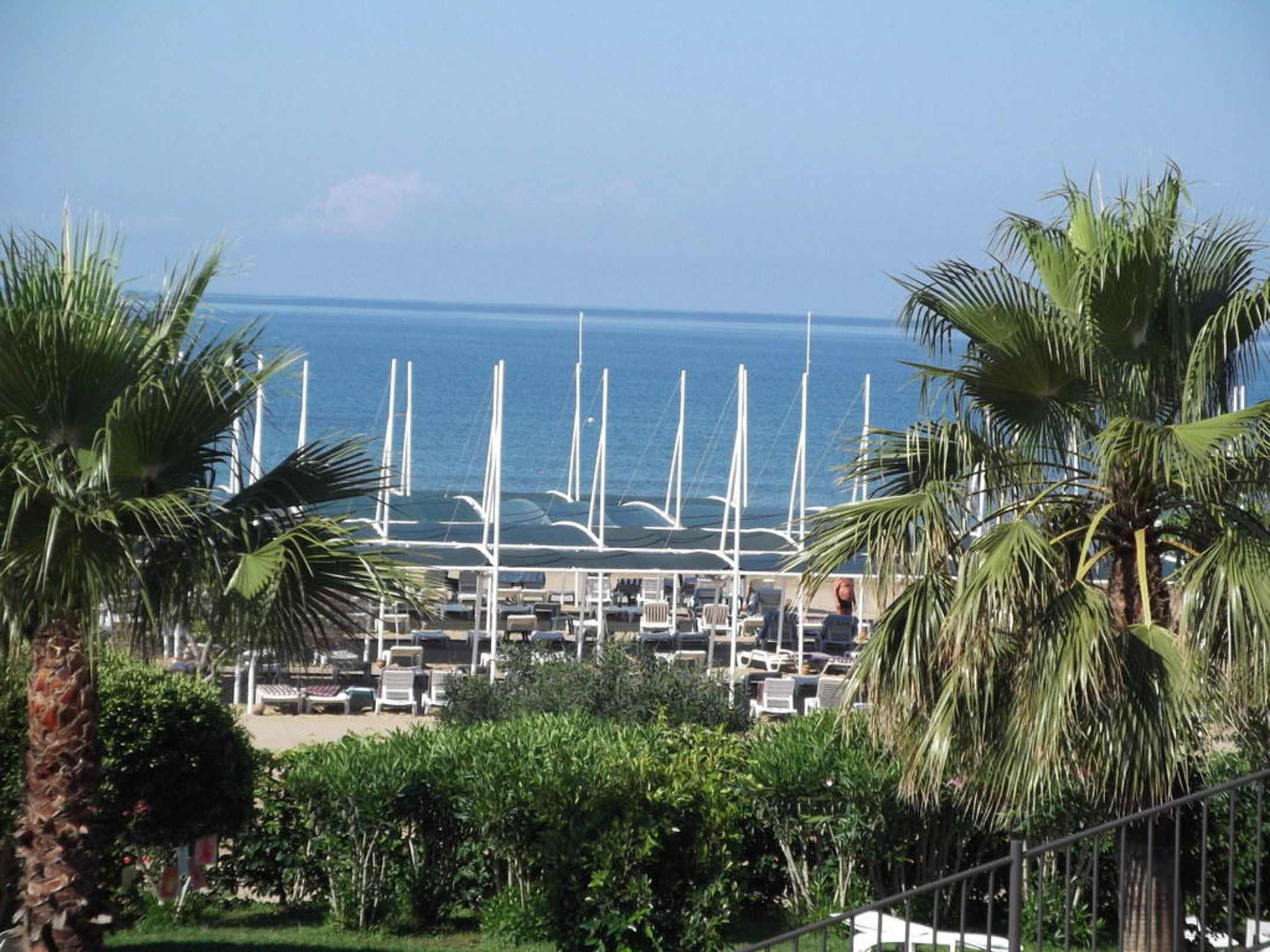 Blick vom schönen Garten zum Strand