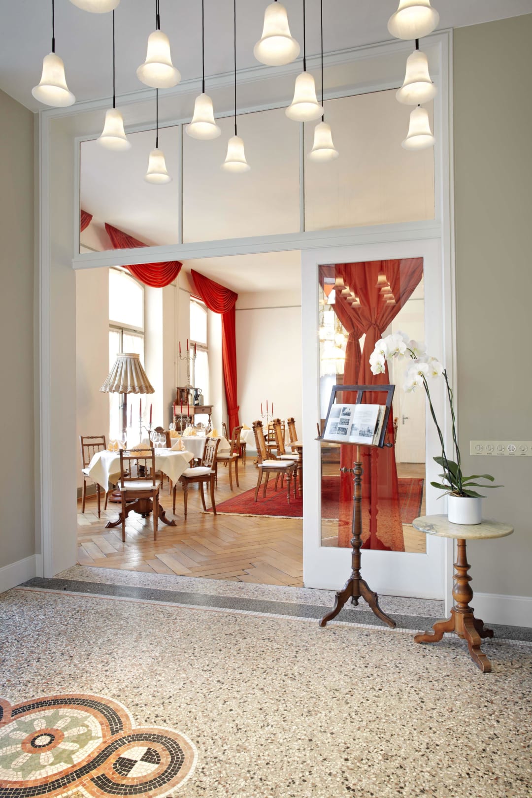 Hoteleingang mit Blick ins Winter-Restaurant