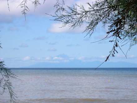 Ausblick von unserem FrühstücksplatzAn klaren Tagen gut zu erkennen der Berg Atos auf Chalkidiki