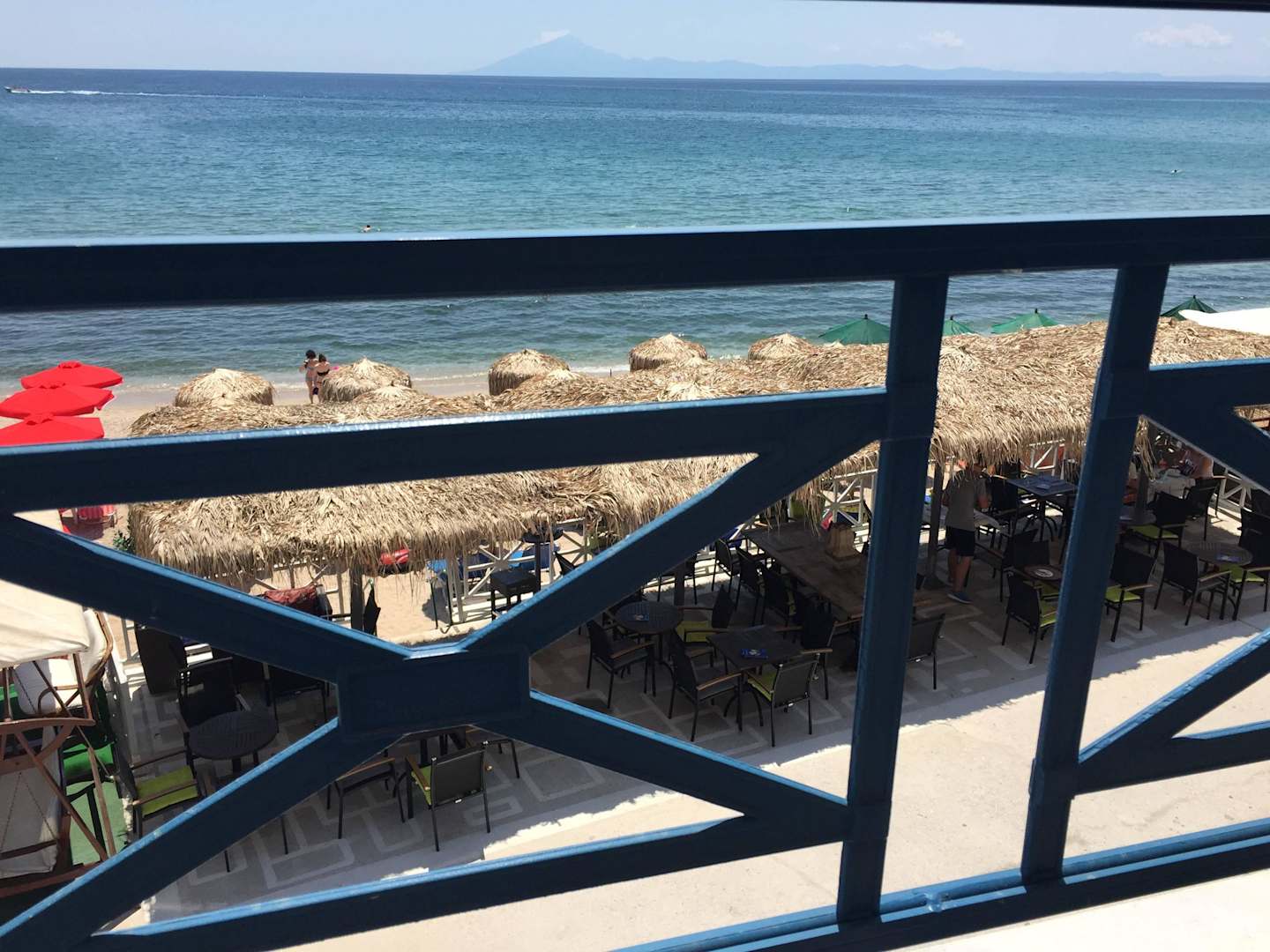 Blick aus Zimmer (2. Stock), unten der Gastrobereich