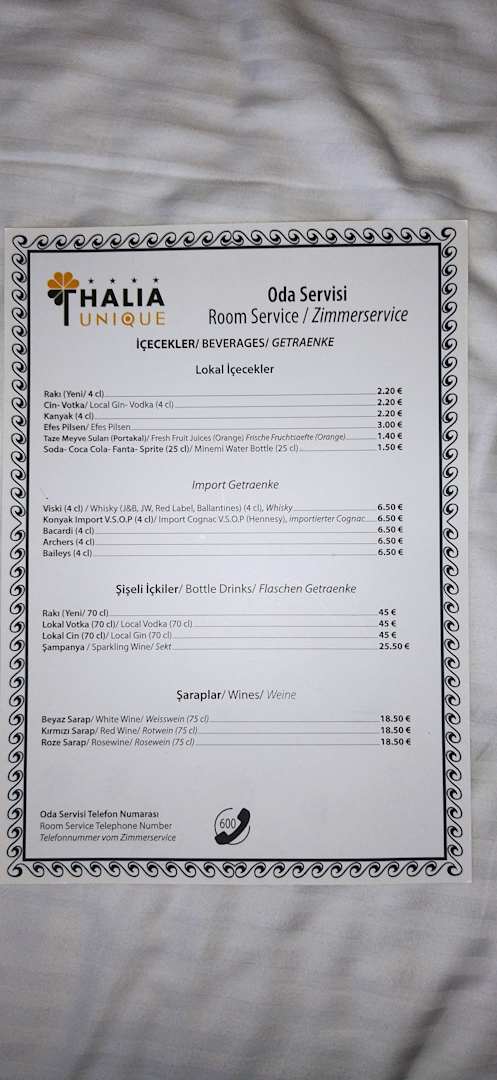 Zimmerservice-Karte