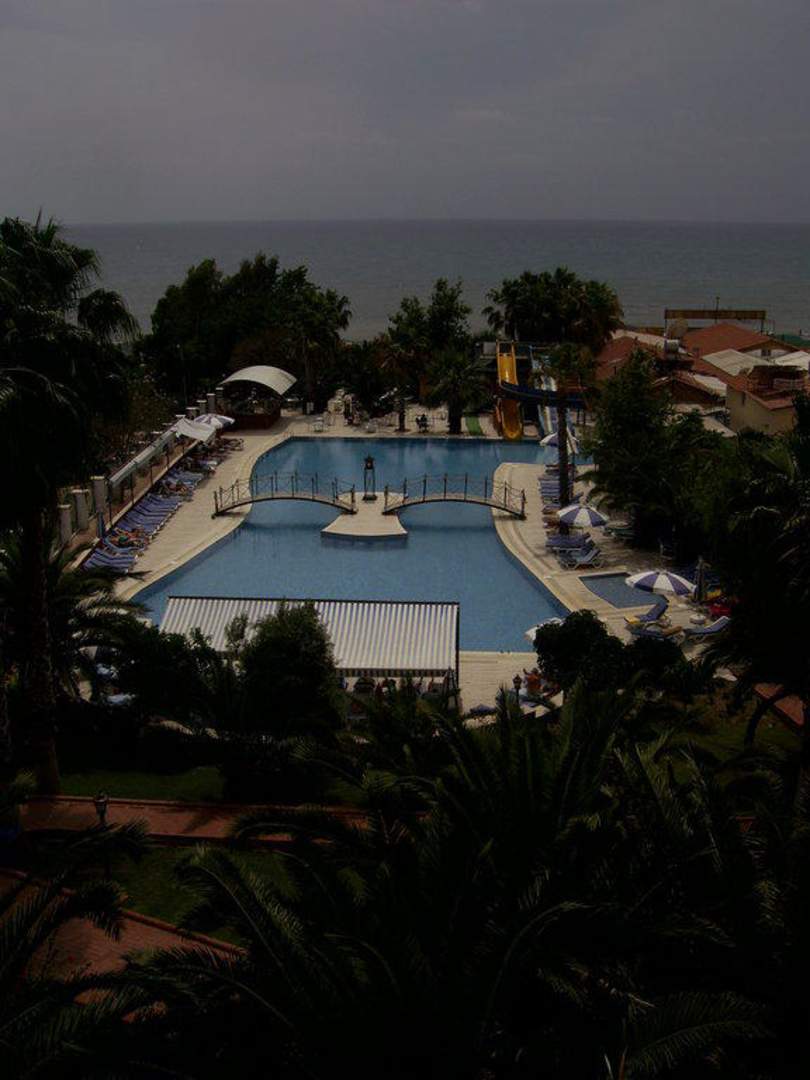 AusblickBlick von der oberen Etage des Hotels über den Pool zum Meer