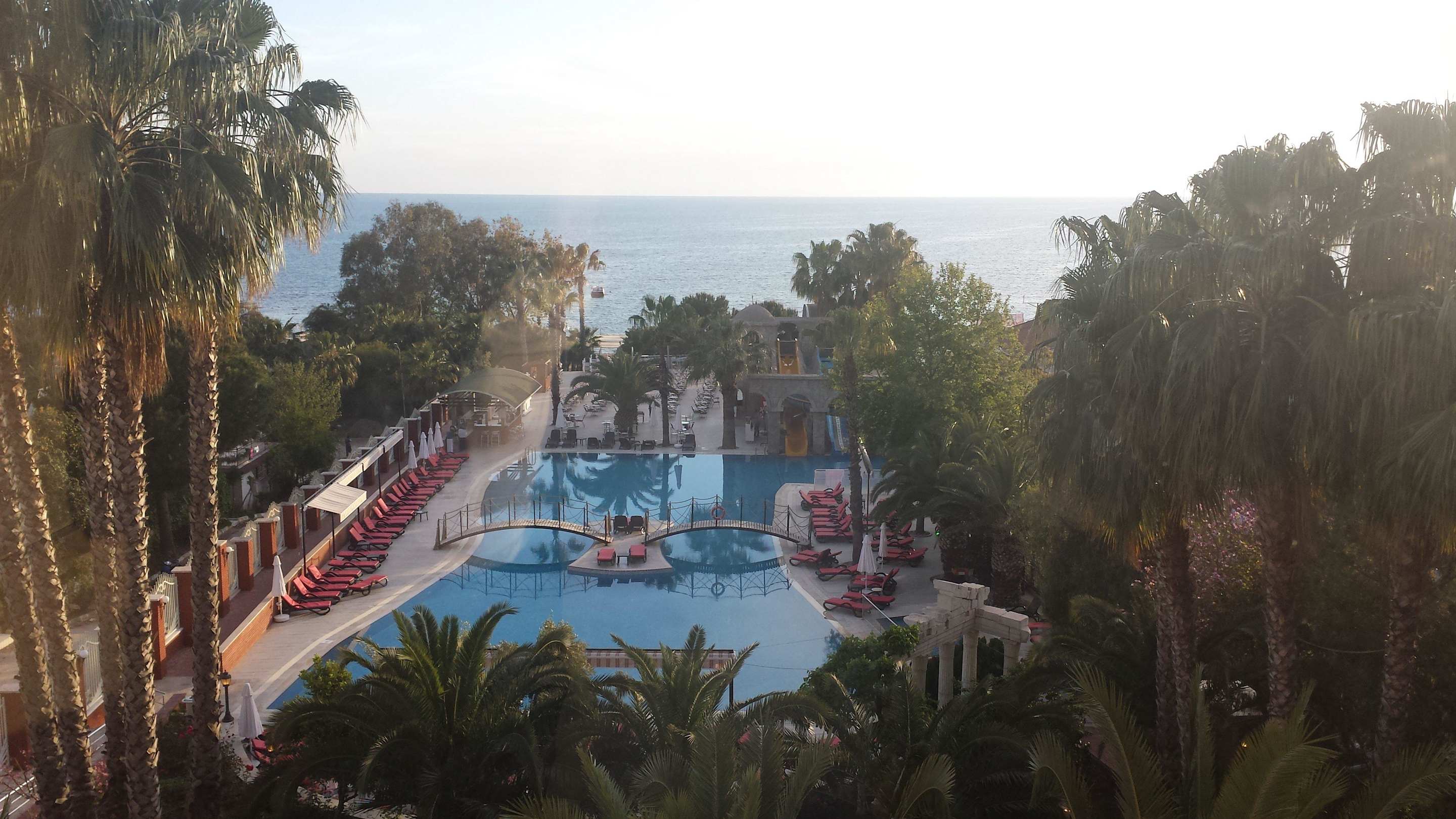 Blick von der Barterrasse auf die Poolanlage