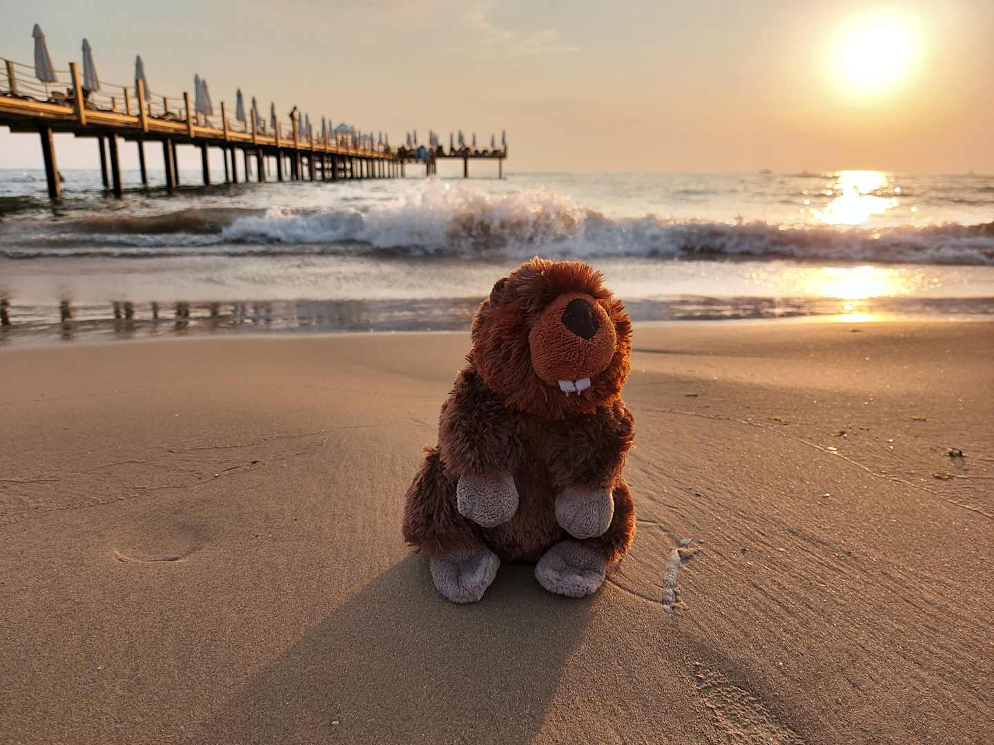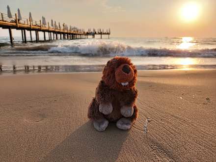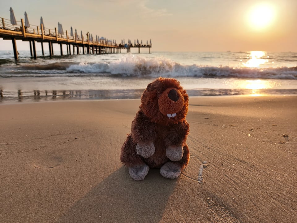 Der Biber und das Meer am Thalia Strand.