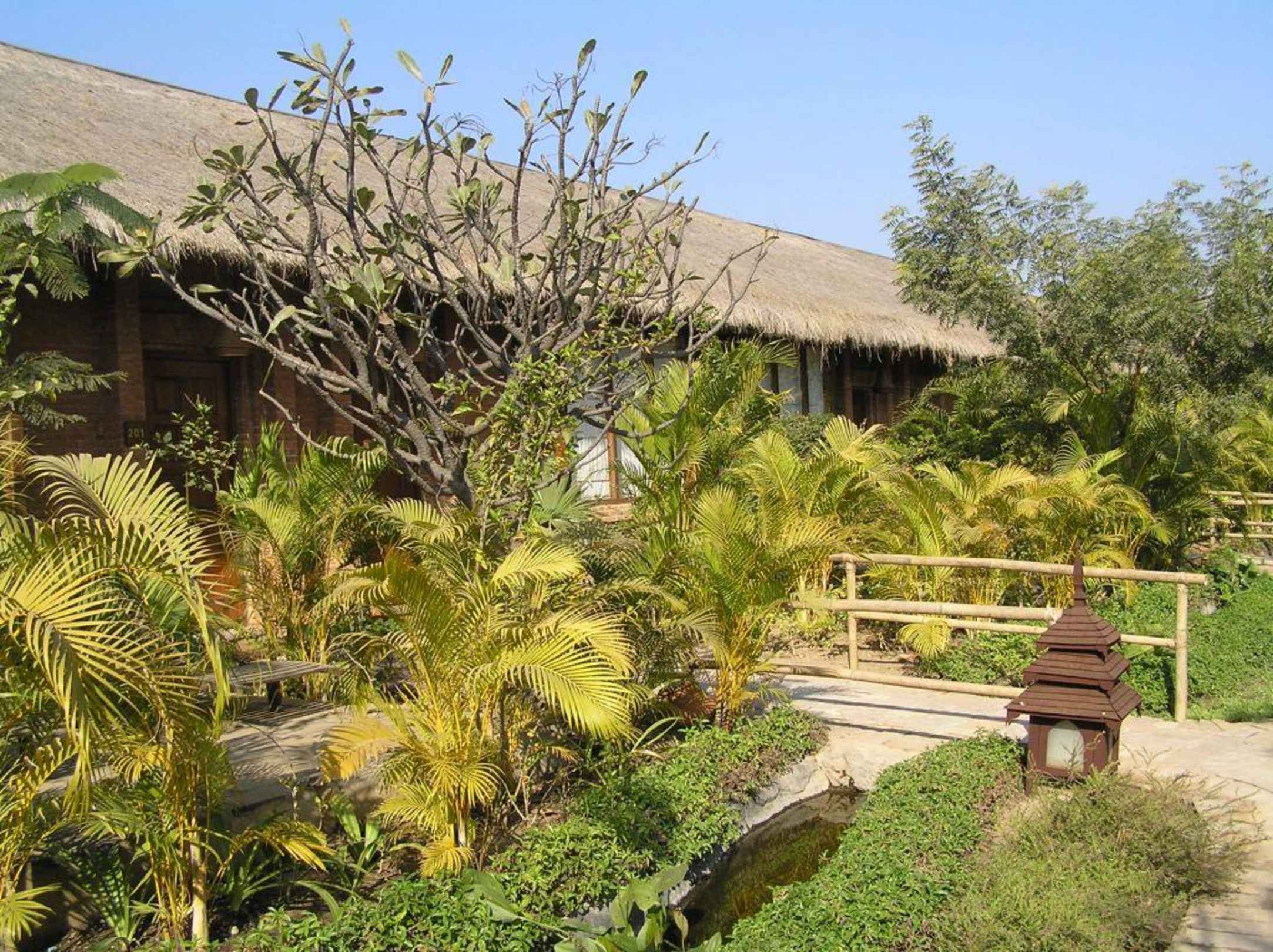 Garten mit Eingang zum Bungalow