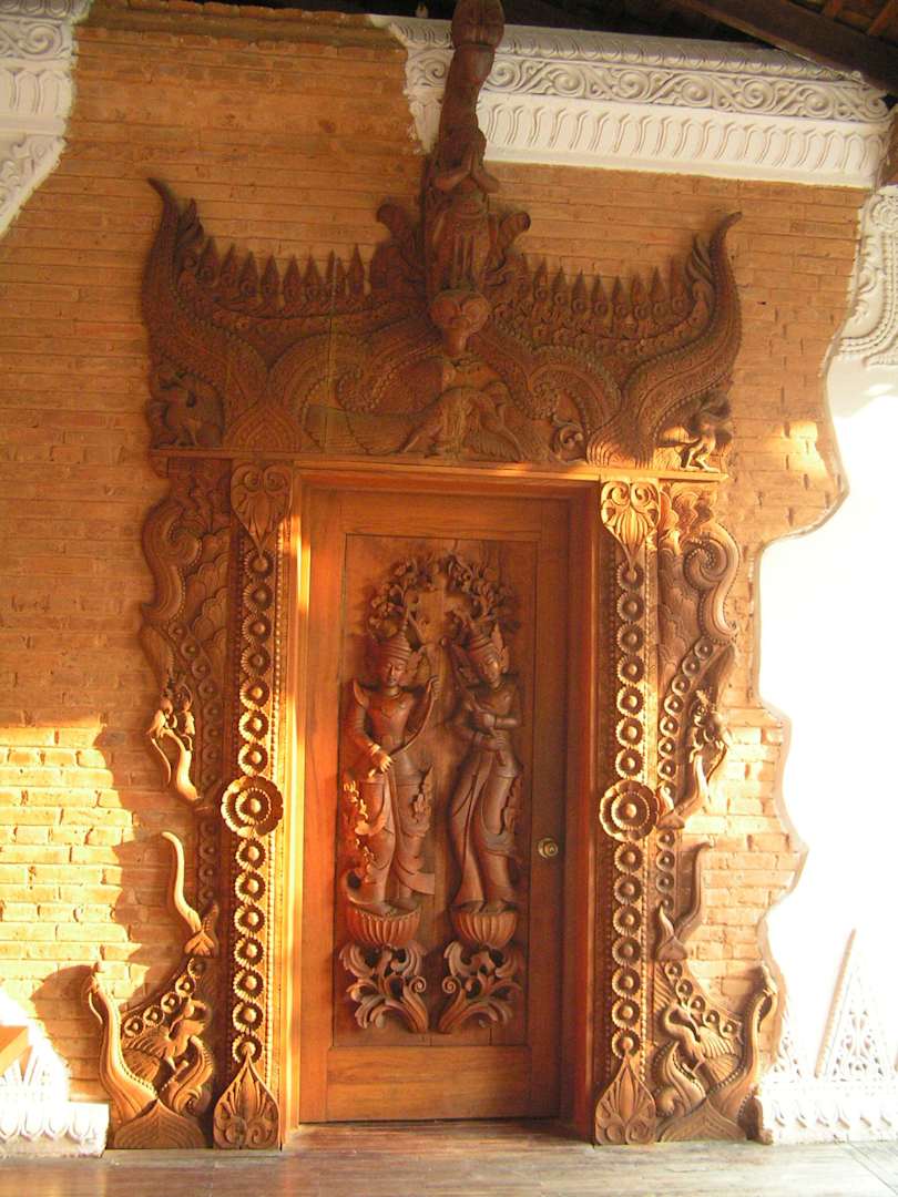 This door is made in wood and represent the dancers called "apsaras"